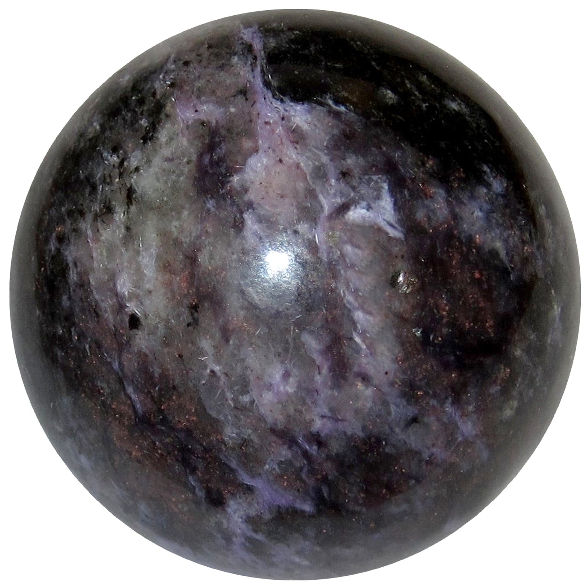 Your new sphere is polished from natural, untreated purple and black Charoite from Russia. Each stone is unique and retains natural pits, grooves, and inclusions.