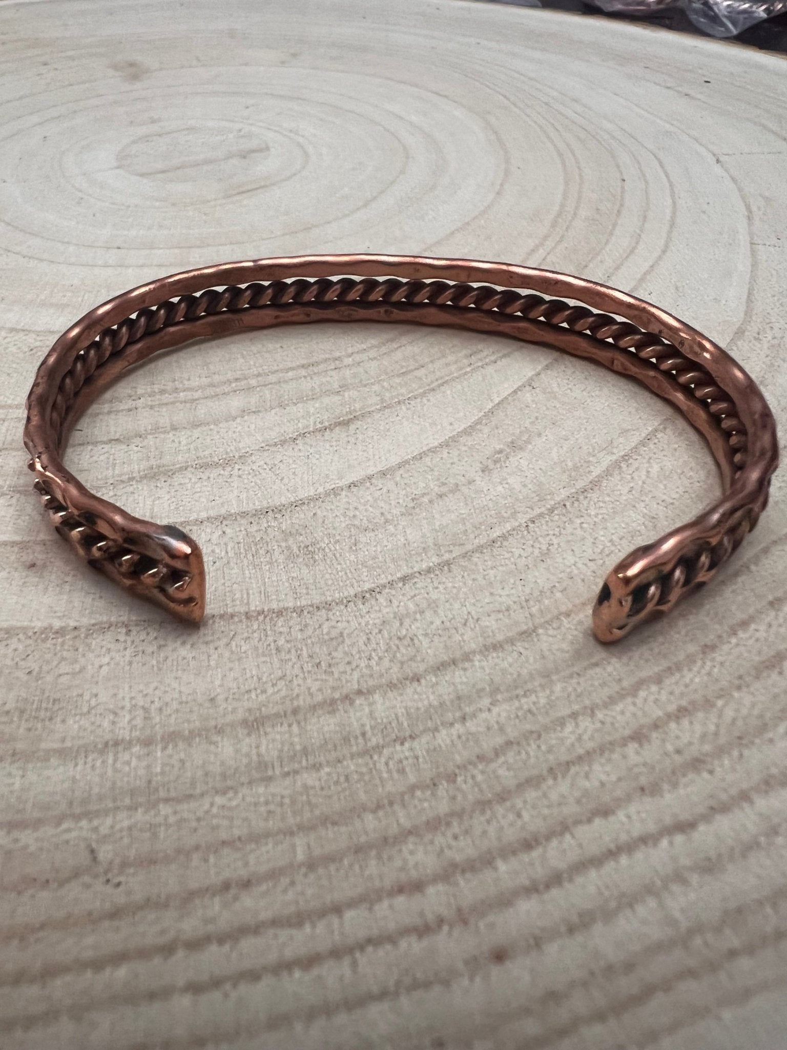 Forged by Navajo artisan Elaine Tahe, this authentic copper bracelet embodies traditional Western craftsmanship.