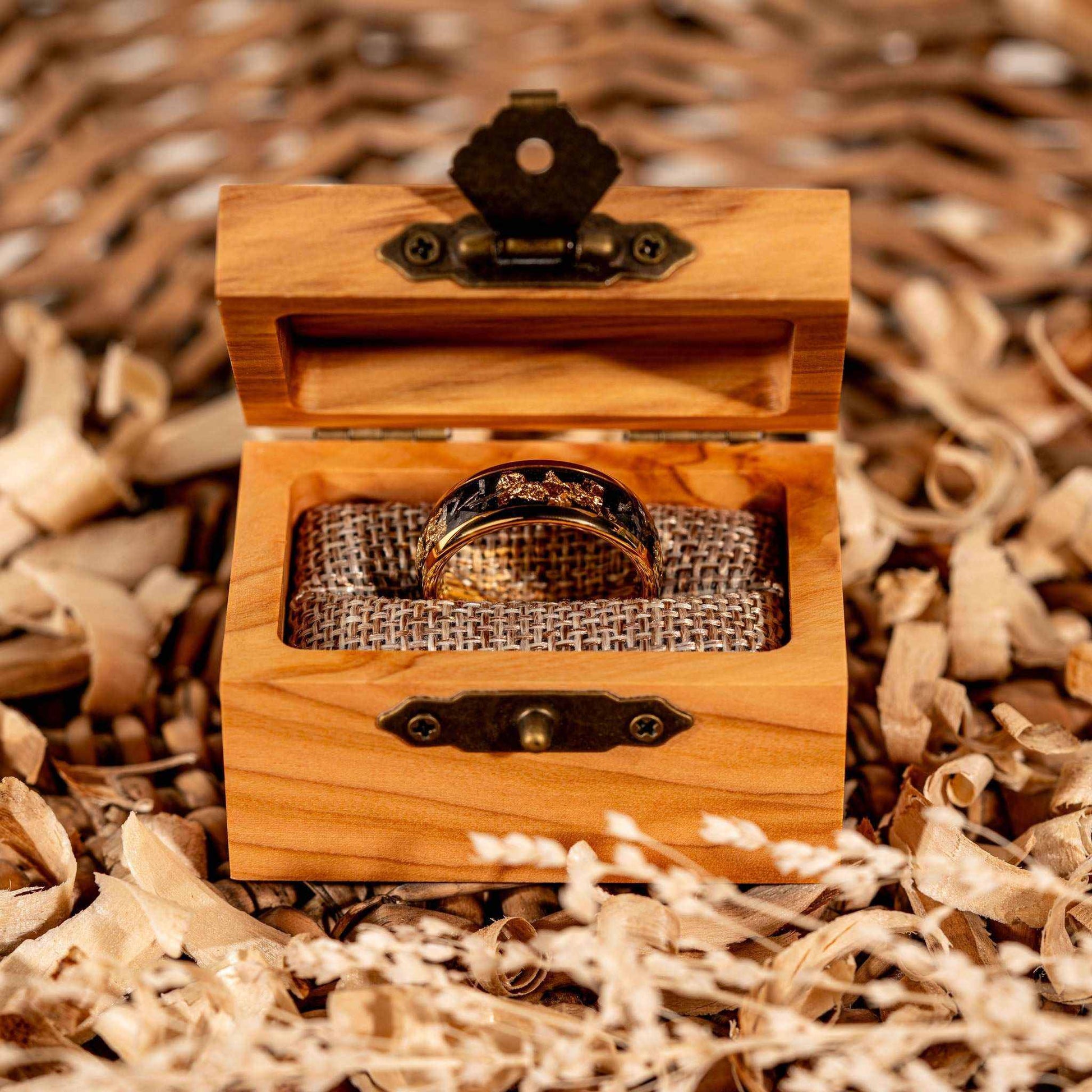 Meteorite Ring x 22K Gold Leaf – Tungsten Carbide Ring for Men