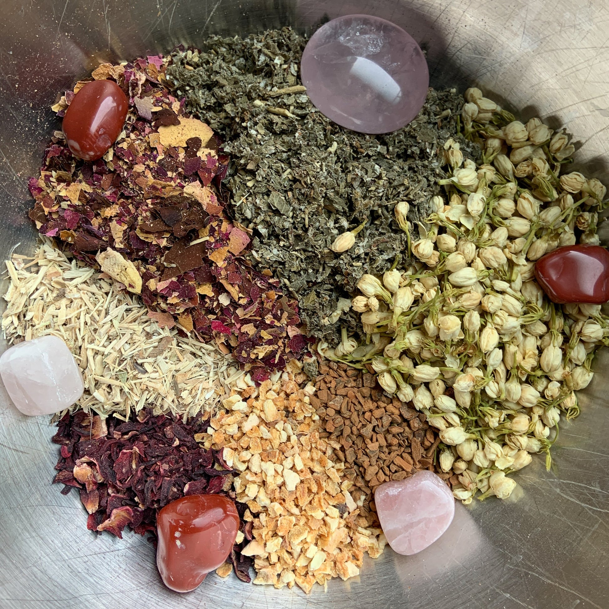 Rose, Hibiscus, Jasmin Flowers, Red Raspberry, Eleuthero Root, Orange Zest